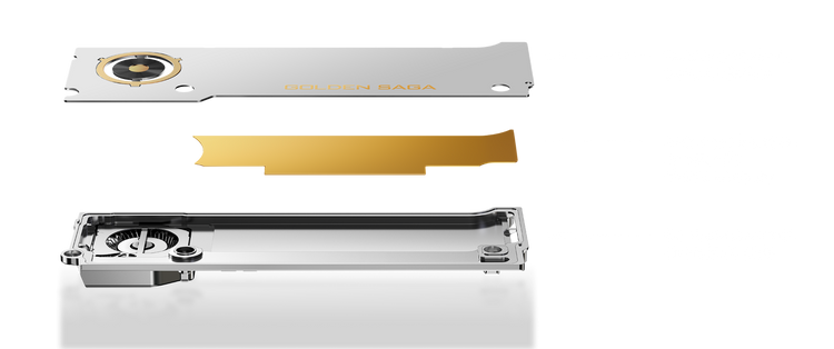 La edición limitada REDMAGIC Golden Saga cuenta con un conducto de aire de aleación de plata, fabricado con uno de los mejores conductores térmicos (429 W/m•K) y mejorado con aletas de disipación de calor VC chapadas en oro. Este diseño avanzado maximiza la disipación del calor, liberando todo el potencial del chip Snapdragon 8 Elite.