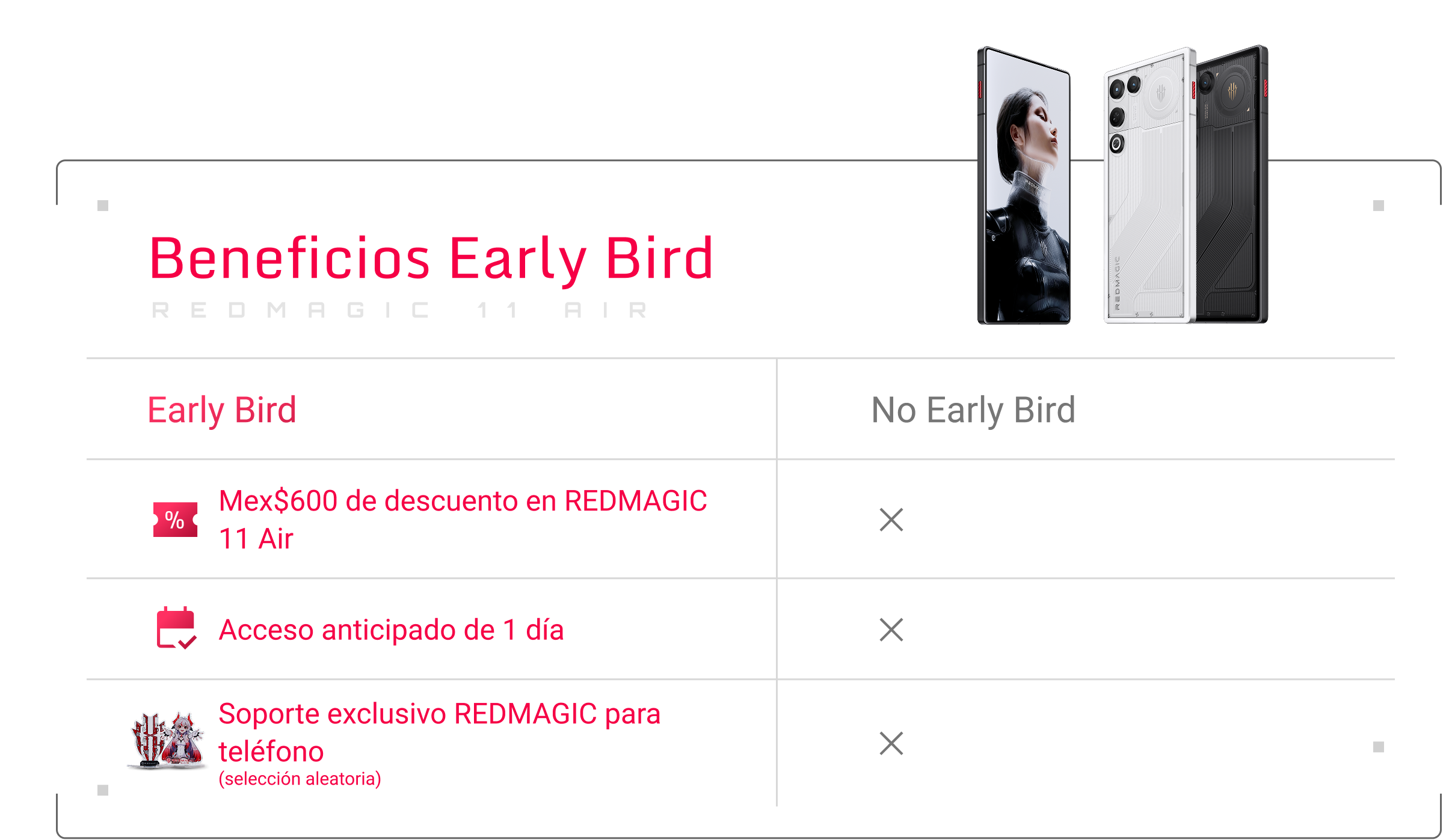 5) La versión del soporte de teléfono se seleccionará al azar. Cada cupón Early Bird incluye un regalo gratuito, enviado con tu pedido de REDMAGIC 11 Air.