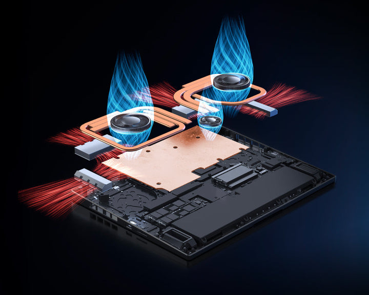 El diseño de flujo de aire 3D permite que grandes volúmenes de aire frío entren en el chasis. 6 tubos de calor combinados con una cámara de vapor extra grande enfrían rápidamente los componentes clave y todo el sistema, con ventiladores integrados y escape de paso para una disipación de calor más rápida.