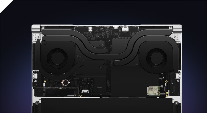 El potente sistema de refrigeración con ventiladores duales de 4500 RPM ofrece una liberación de rendimiento de 195W, gestionando eficientemente el calor sobre una gran superficie de 57,903.3 mm² para mantener tu dispositivo fresco en condiciones intensas.