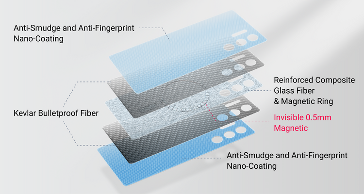 Multiple imported layers of Aramid fiber for superior phone protection.