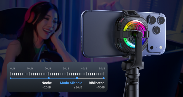 - Modo silencioso de 36dB: Optimizado para un ruido mínimo durante juegos y transmisiones en vivo.