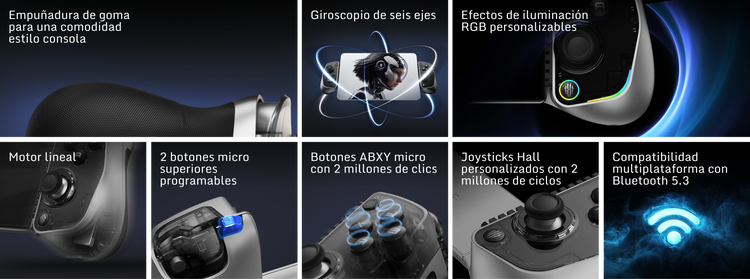 Con la app exclusiva Goper, personaliza la iluminación RGB, la vibración, la asignación de botones/joysticks, las zonas muertas de joysticks/disparadores, la grabación de macros y otros ajustes.