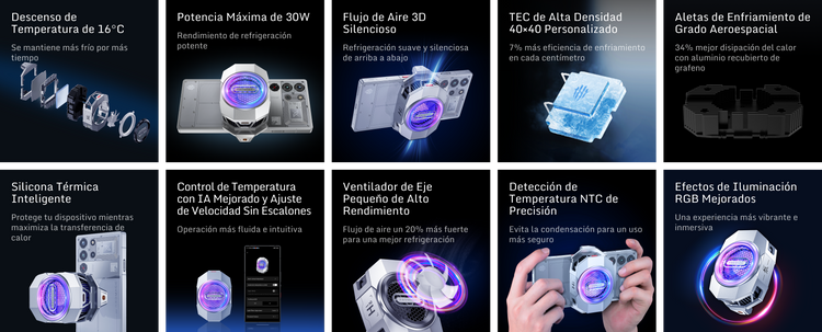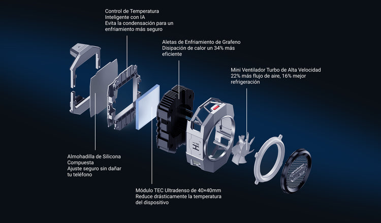 Experimenta un control completo con el sistema de ajuste continuo, que te permite afinar el rendimiento de refrigeración con absoluta precisión. Ya sea que estés exigiendo al máximo tu dispositivo durante largas sesiones de juego o que solo necesites una refrigeración ligera para el uso diario, el sistema se adapta perfectamente a tus necesidades y entorno.