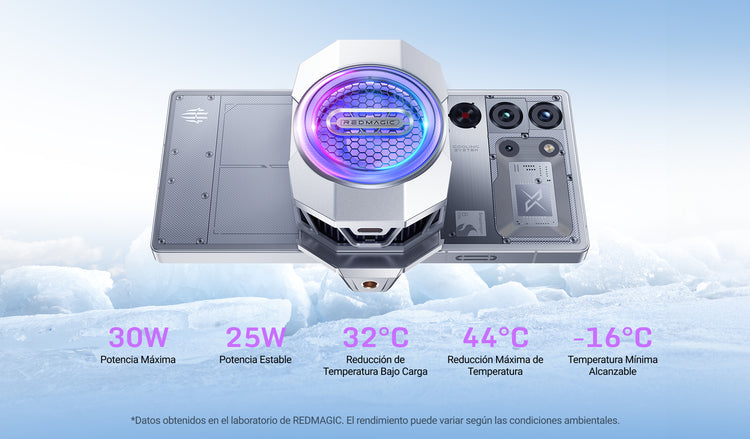 Aprovechando una potencia máxima de 30W con una salida estable de 25W, el REDMAGIC Cooler 6 ofrece un enfriamiento instantáneo bajo cero, alcanzando los -16°C en solo 10 segundos. Bajo cargas intensas, reduce la temperatura hasta 32°C, garantizando un rendimiento ultra frío para sesiones de juego maratónicas.